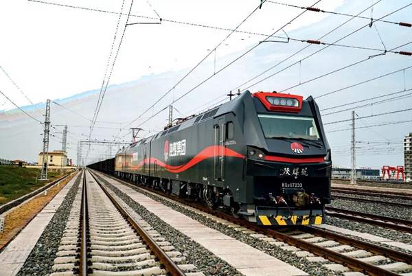 “陜煤號”機車(chē)牽引萬(wàn)噸重載煤炭列車(chē)馳騁奔向市場(chǎng)
