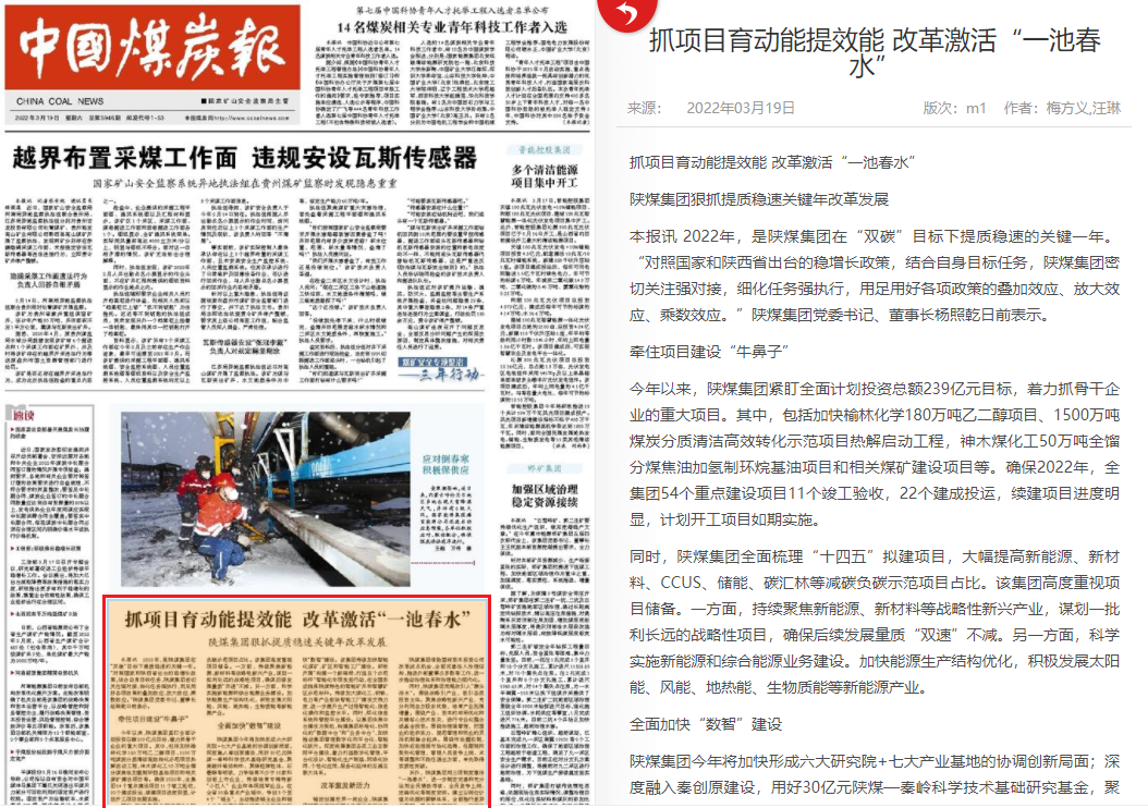 中國煤炭報| 陜煤集團狠抓提質(zhì)穩速關(guān)鍵年改革發(fā)展