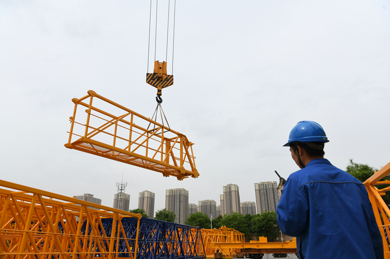 完成噴涂的塔式起重機部件源源不斷地從自動(dòng)化粉末涂裝生產(chǎn)線(xiàn)下線(xiàn)。