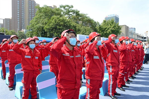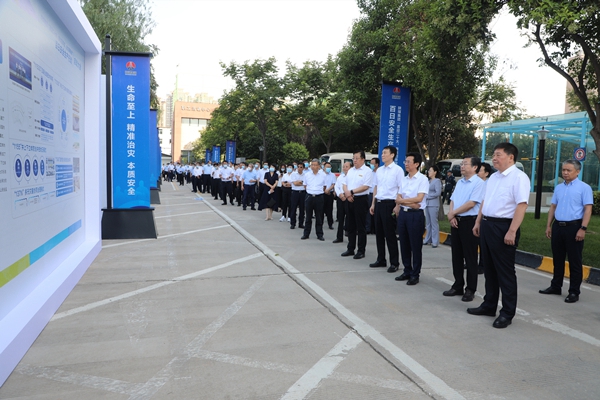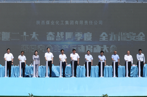 與會(huì )領(lǐng)導共同啟動(dòng)陜煤集團“喜迎二十大、奮戰四季度、全力保安全”百日安全生產(chǎn)大行動(dòng)。