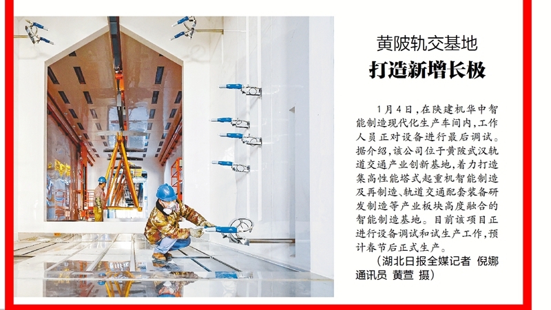 黃陂軌交基地 打造新增長(cháng)極1月4日,在陜建機華中智能制造現代化生產(chǎn)車(chē)間內,工作人員正對設備進(jìn)行最后調試。據介紹,該公司位于黃陂武漢軌道交通產(chǎn)業(yè)創(chuàng )新基地,著(zhù)力打造集高性能塔式起重機智能制造及再制造、軌道交通配套裝備研發(fā)制造等產(chǎn)業(yè)板塊高度融合的智能制造基地。目前該項目正進(jìn)行設備調試和試生產(chǎn)工作,預計春節后正式生產(chǎn)。(湖北日報全媒記者 倪娜 通訊員 黃萱 攝)