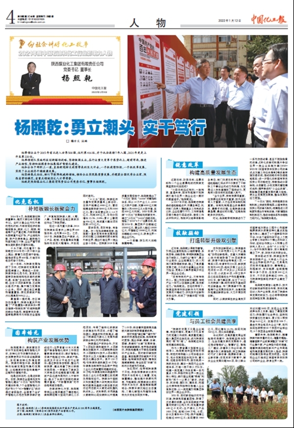 中國化工報 | 楊照乾:勇立潮頭 實(shí)干篤行