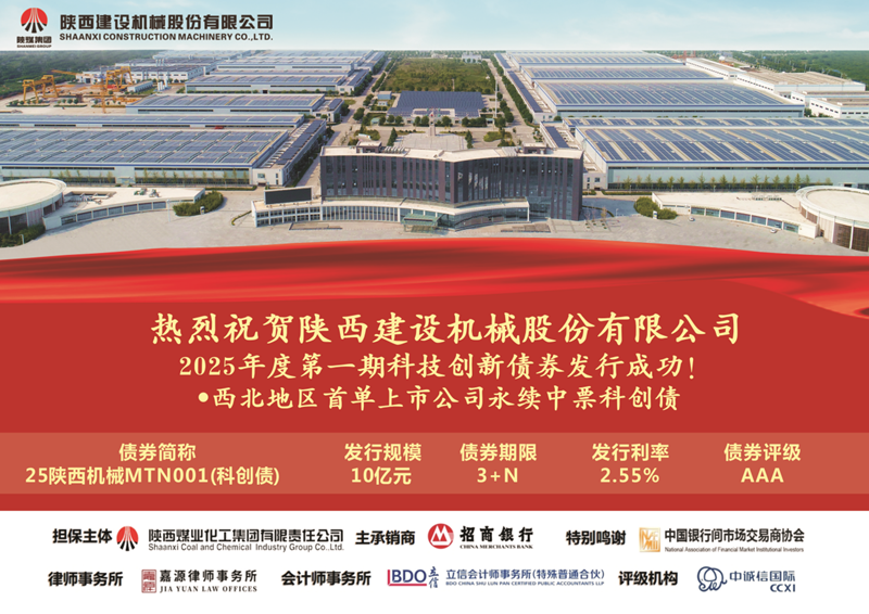 6月26日,陜西建設機械股份有限公司(以下簡(jiǎn)稱(chēng)“建設機械”)成功發(fā)行2025年度第一期科技創(chuàng )新債券,發(fā)行規模10億元,票面利率2.55%,發(fā)行期限3+N年,債項評級AAA。 本次中期票據簡(jiǎn)稱(chēng)“25陜西機械MTN001(科創(chuàng )債)”,由陜煤集團提供連帶責任保證擔保,招商銀行擔任獨家承銷(xiāo)商。建設機械充分借助中國銀行間市場(chǎng)交易商協(xié)會(huì )大力推廣債券市場(chǎng)“科創(chuàng )板”的有利政策,成功發(fā)行西北首單上市公司科技創(chuàng )新債券,也是陜西省屬企業(yè)首次發(fā)行次級永續中期票據。作為陜煤集團裝備制造板塊核心企業(yè),建設機械自2004年在上海證券交易所掛牌上市(股票代碼:...