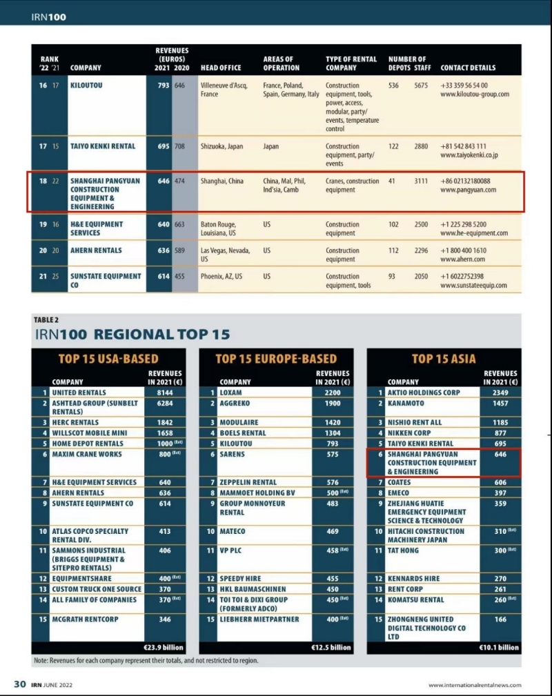 日前,國際知名行業(yè)評價(jià)機構英國KHL集團向全球公布了2021年全球工程機械租賃百強榜-IRN100榜單,陜建機股份所屬上海龐源機械租賃有限公司(以下簡(jiǎn)稱(chēng)龐源租賃)以年度營(yíng)業(yè)收入43.34億元位居全球排名第18位,較2020年上升4位,再創(chuàng )歷史新高。在全球區域榜單排名中,龐源租賃位居亞洲第6名,穩居中國工程機械租賃行業(yè)第1名。 實(shí)至名歸 龐源租賃是進(jìn)入建筑起重機械租賃行業(yè)較早的企業(yè)。2015年,陜建機股份以發(fā)行股份的形式,對龐源租賃進(jìn)行了并購重組,重新整合優(yōu)化了產(chǎn)業(yè)結構,一舉打通了工程機械制造和租賃服務(wù)上下游供應鏈,推動(dòng)...