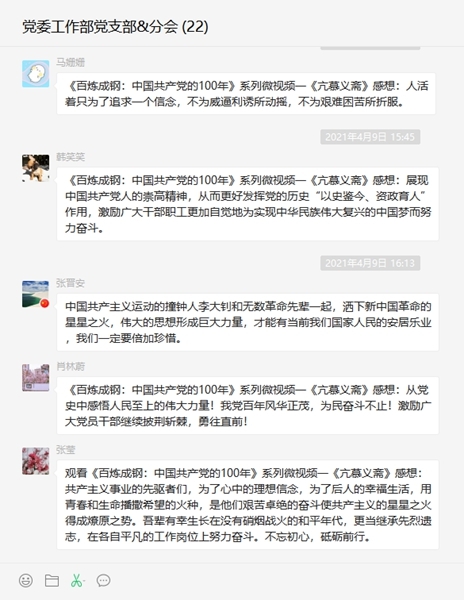 黨史學(xué)習教育開(kāi)展以來(lái),陜建機股份公司黨委認真組織,積極引導,有序開(kāi)展。在近日開(kāi)展的系列學(xué)習中,《百煉成鋼:中國共產(chǎn)黨的100年》系列微視頻分享,黨的光榮傳統和優(yōu)良作風(fēng)引發(fā)了黨員干部職工熱議。 陜建機股份公司黨委工作部黨支部黨員李丹珍在收看《百煉成鋼》系列微視頻二《老漁陽(yáng)里的秘密》后感慨談到:“這兩處看似尋常的石庫門(mén)建筑,卻與中共的誕生及初期活動(dòng)緊緊地維系在一起,“漁陽(yáng)里”因此成為中國共產(chǎn)黨孕育初心之地、紅色征程原點(diǎn)。昔日風(fēng)雨搖曳里的漁陽(yáng)里,今日化為不滅的民族精神。我們緬懷先烈...